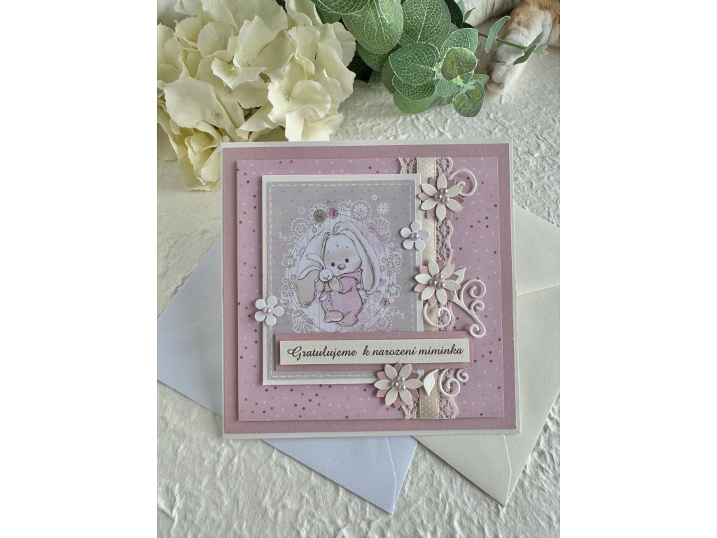 - Text na přední straně: Gratulujeme k narození miminka