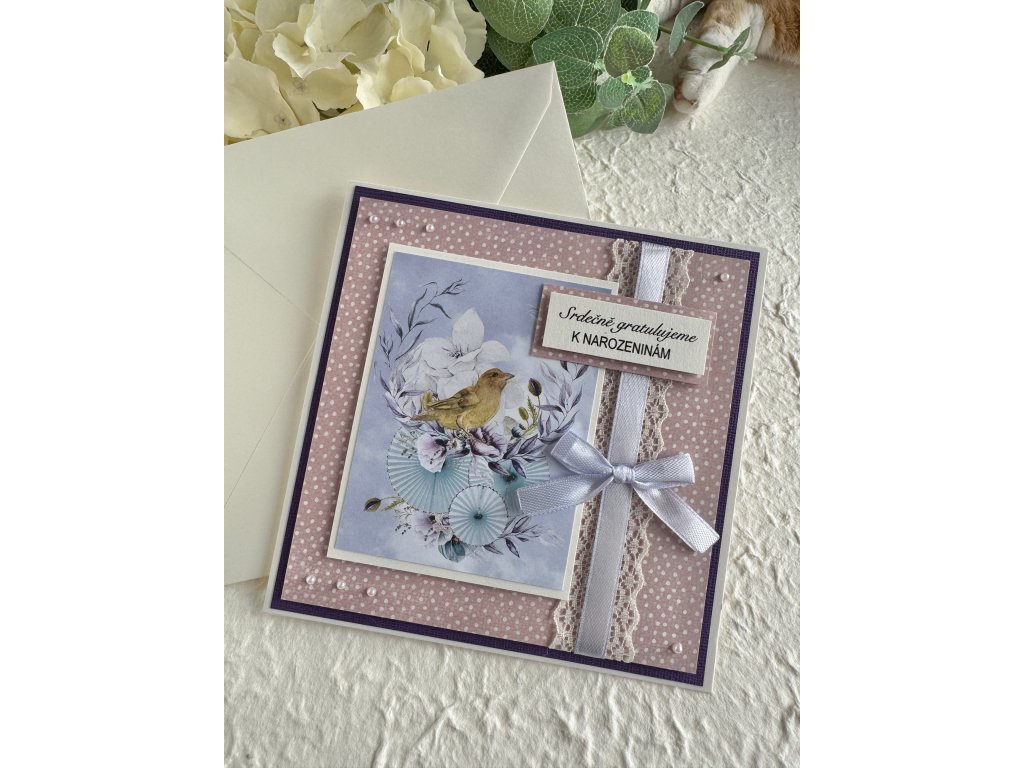 Toto jemné blahopřání s ptáčkem jistě potěší kteroukoli ženu ve vaší blízkosti.