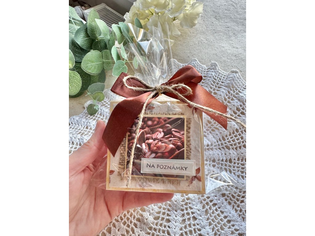 Trhací bloček plný lístků - praktická drobnost na každý pracovní stůl. Bloček je klasická kancelářská kostka lepená po jedné straně. Design je různý, vyberte si dle libosti. Velikost dárkového balení je 9x9x5 cm, baleno do celofánu se stuhami.