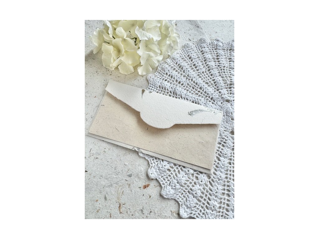 Elegantní ručně vyráběná obálka zajímavého tvaru, ideální pro decentní darování peněz, vzkazu či přání – bez ohledu na věk nebo pohlaví obdarovaného. Obálka nemá rovnou klopu, neobsahuje lepicí proužek.