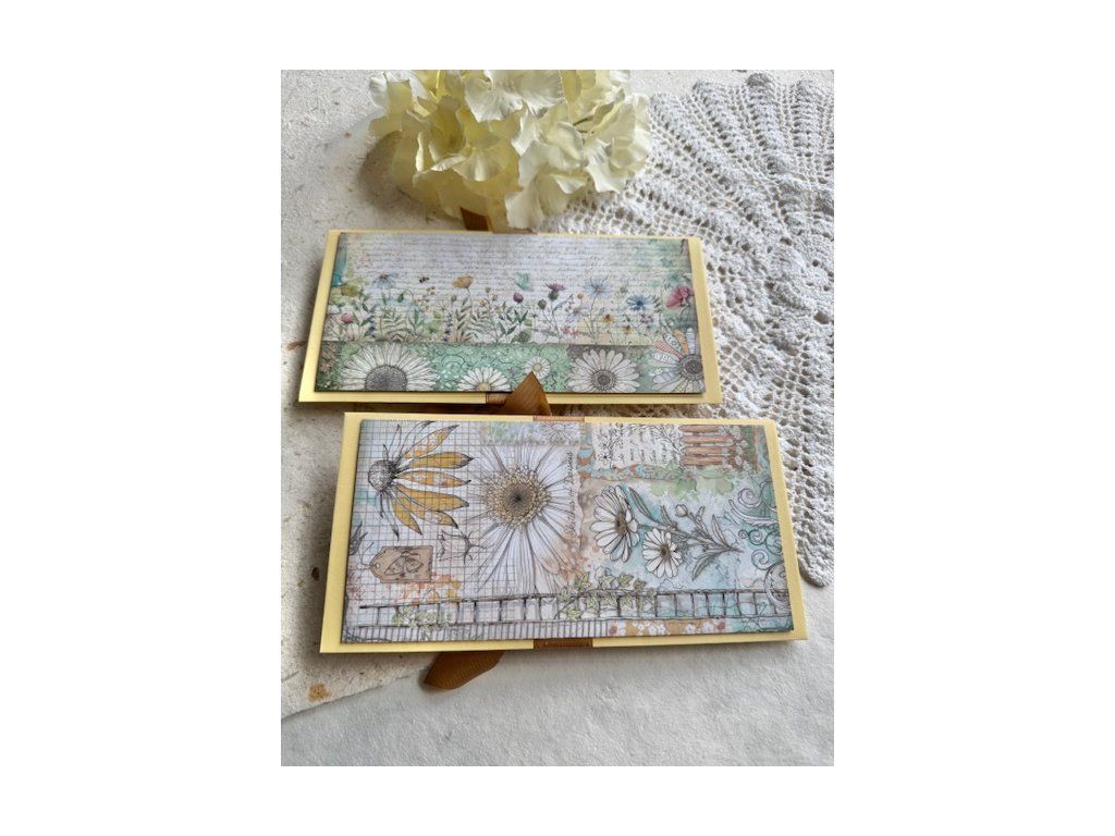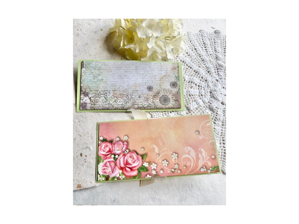 Dárková obálka je fajn k jakékoli oslavě, výročí či významnému dni - k darování peněz či poukazu, uvnitř je navíc karta na napsání textu. Obálka je vyrobena z kvalitních scrapbookových papírů a ozdobena saténovou stuhou š. 2,5 cm na luxusní převázání.