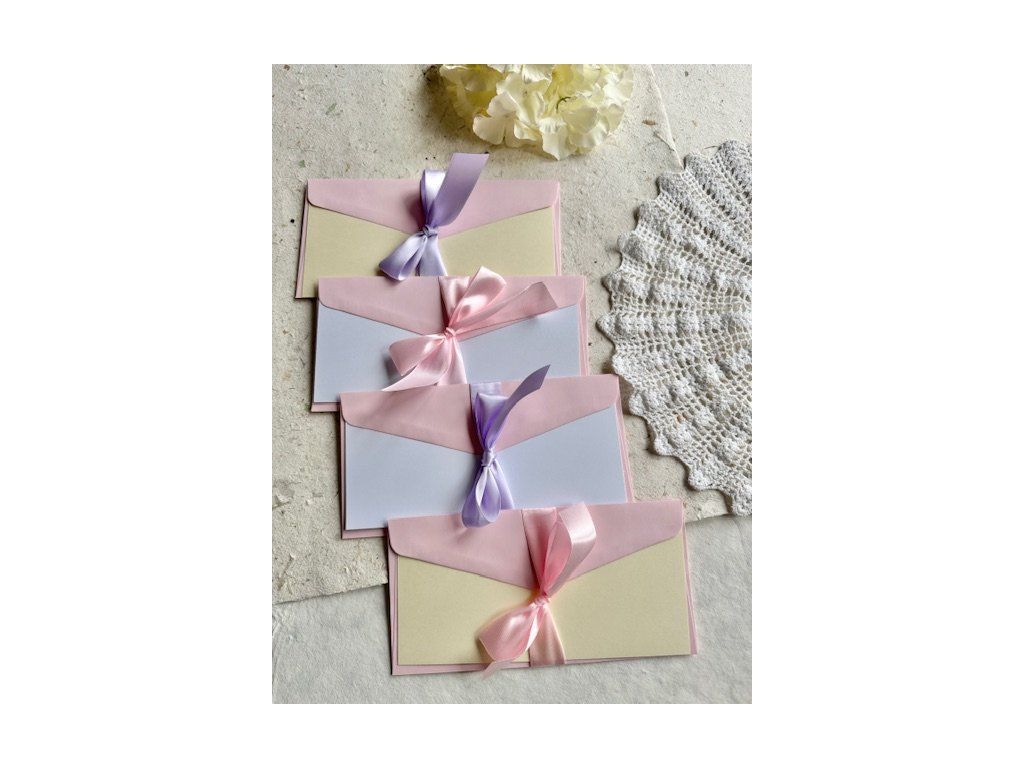 Design dle fotografií - foto stejných obálek jsou řazeny vždy za sebou (fotka z přední strany a zadní se mašlí). Velikost obálky je DL - 22 x 11 cm. Baleno do celofánu.