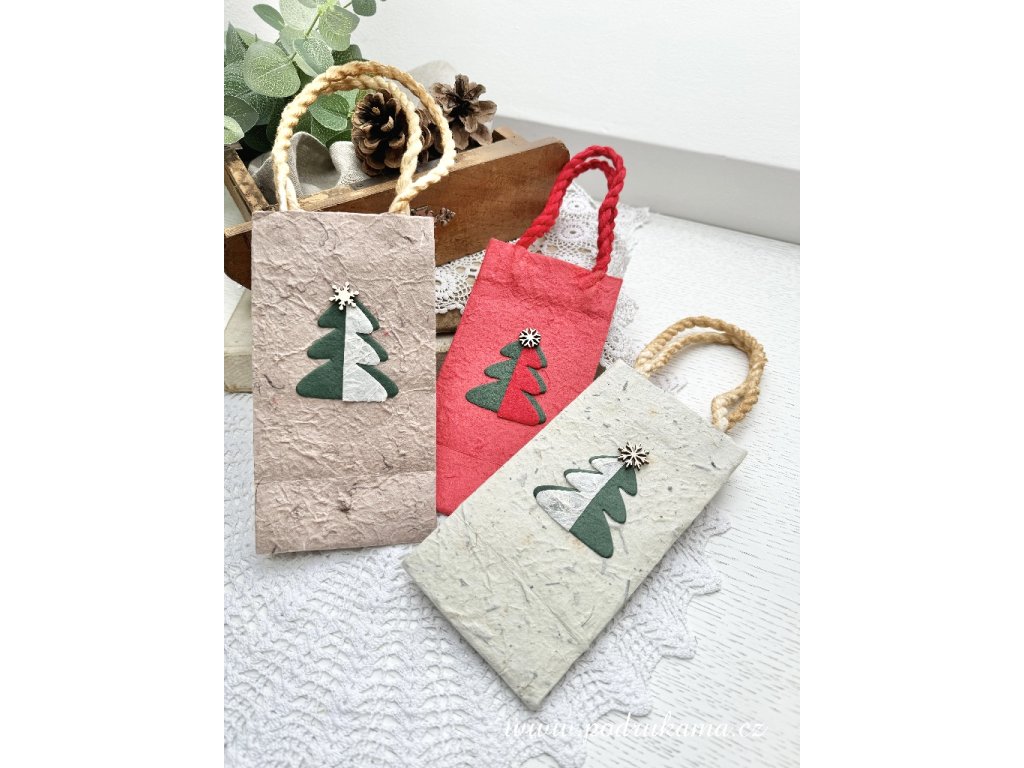 Drobná dárková taška z ručního morušového papíru v menší velikosti, přesné rozměry má š. 10 cm x v. 18 x dno 8 cm. Cena za 1 kus.