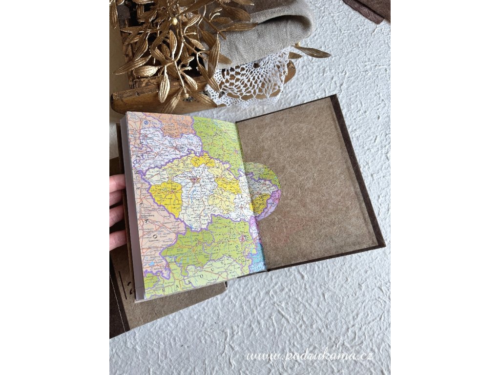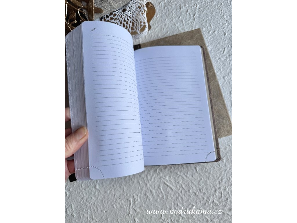- Speciální knihařská lepenka odolává vlhku a nekroutí se, je potažená matným nepálským papírem, předsádky také ruční papír.