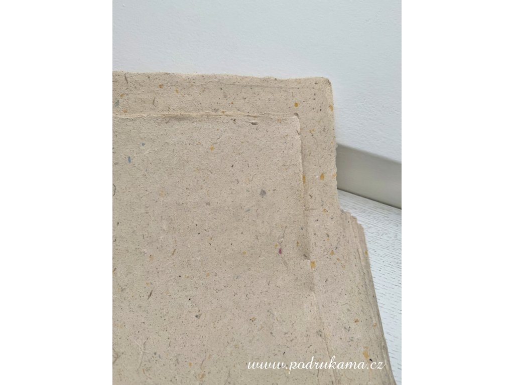 Gramáž: cca 150 g/m2, díky ruční výrobě může být v jednotlivých arších drobná odchylka,