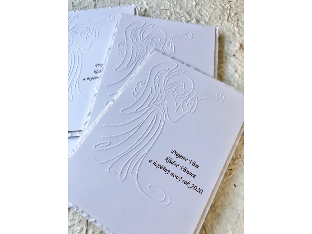 Elegantní novoroční přání s reliéfním vzorem anděla je vhodné zejména pro firmy pohybující se v sociálních oblastech jako jsou neziskové organizace, charity, úřady atp. "Dejte svým partnerům najevo, že jste s nimi a že věříte v jejich úspěch a štěstí v příštím roce!"