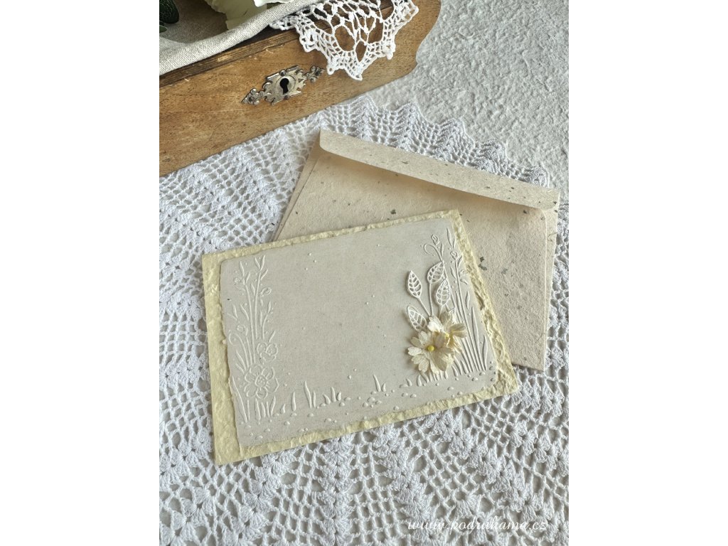 TIP: Pokud potřebujete odeslat přání z ručního papíru poštou, doporučuji přání včetně obálky z ručního papíru vložit do obyčejné obálky většího rozměru a až na tuto obálku napsat adresu, označit pošt. známkou. Tím nedojde k poškození obálky z ručního papíru, a navíc, na některé druhy reliéfních obálek se velmi špatně píše, případně se může poštovní známka díky nerovnosti povrchu i odlepit. Jistota je jistota, je to jen má rada :-).